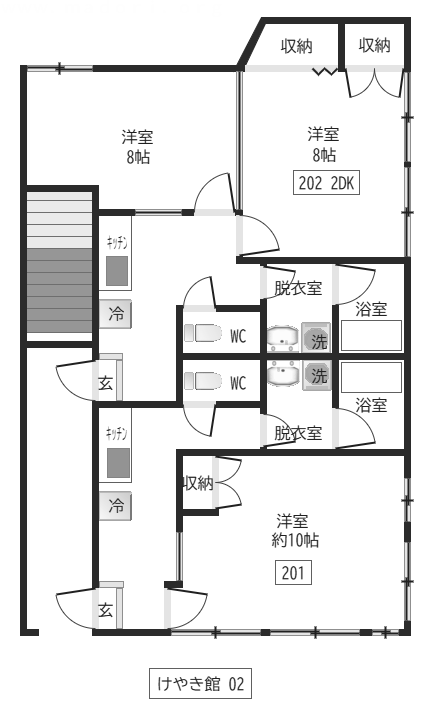 | 間取り | 1K 10帖/ 2K 8帖×2 |